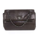 Details: Brown Soft And Quilted Leather / Silver Tone Hardware / Chain Link And Leather Shoulder Strap / Studs At Base / Black Interior Woven Lining / Dual Compartments / Single Zip Pocket At Interior / Logo Turn Lock Closure At Front