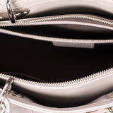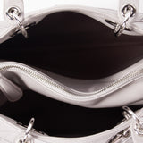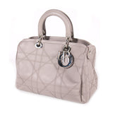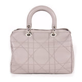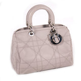 Details: Light Grey Cannage Lambskin Leather / Silver-Tone Hardware / Dual Rolled Handles / Adjustable Detachable Shoulder Strap / Dior Log Charm Adornments At Front Face / Grey Grosgrain Interior Lining / Three Interior Compartments, One With Zip Closure / Dual Flat Pockets And Zip Pocket At Interior Walls