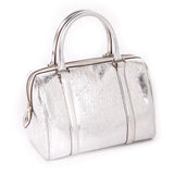 Details: Metallic Silver Leather / Silver-Tone Hardware / Dual Rolled Handles / Beige Woven Interior Lining / Dual Flat Pockets At Interior / Zip Pocket At Interior Wall / Zip Closure