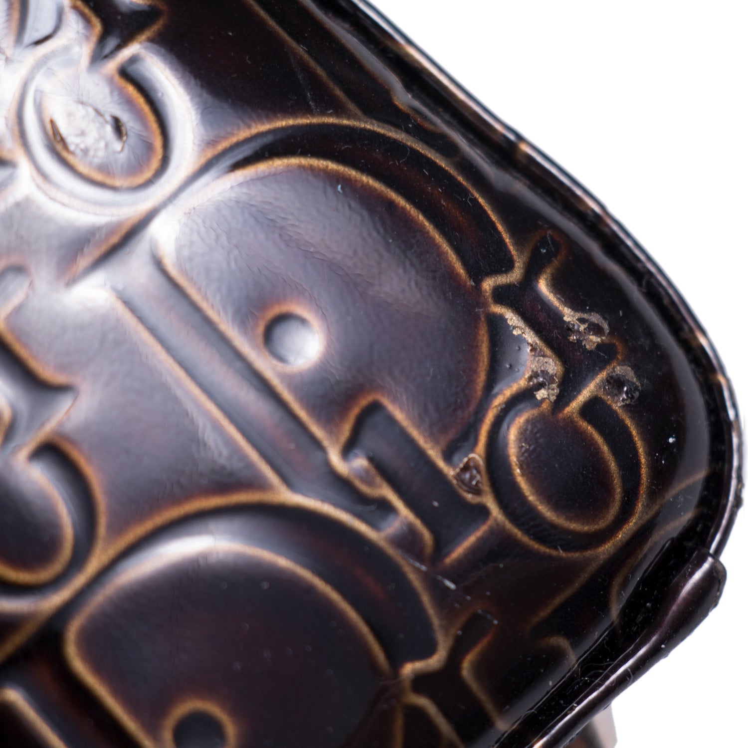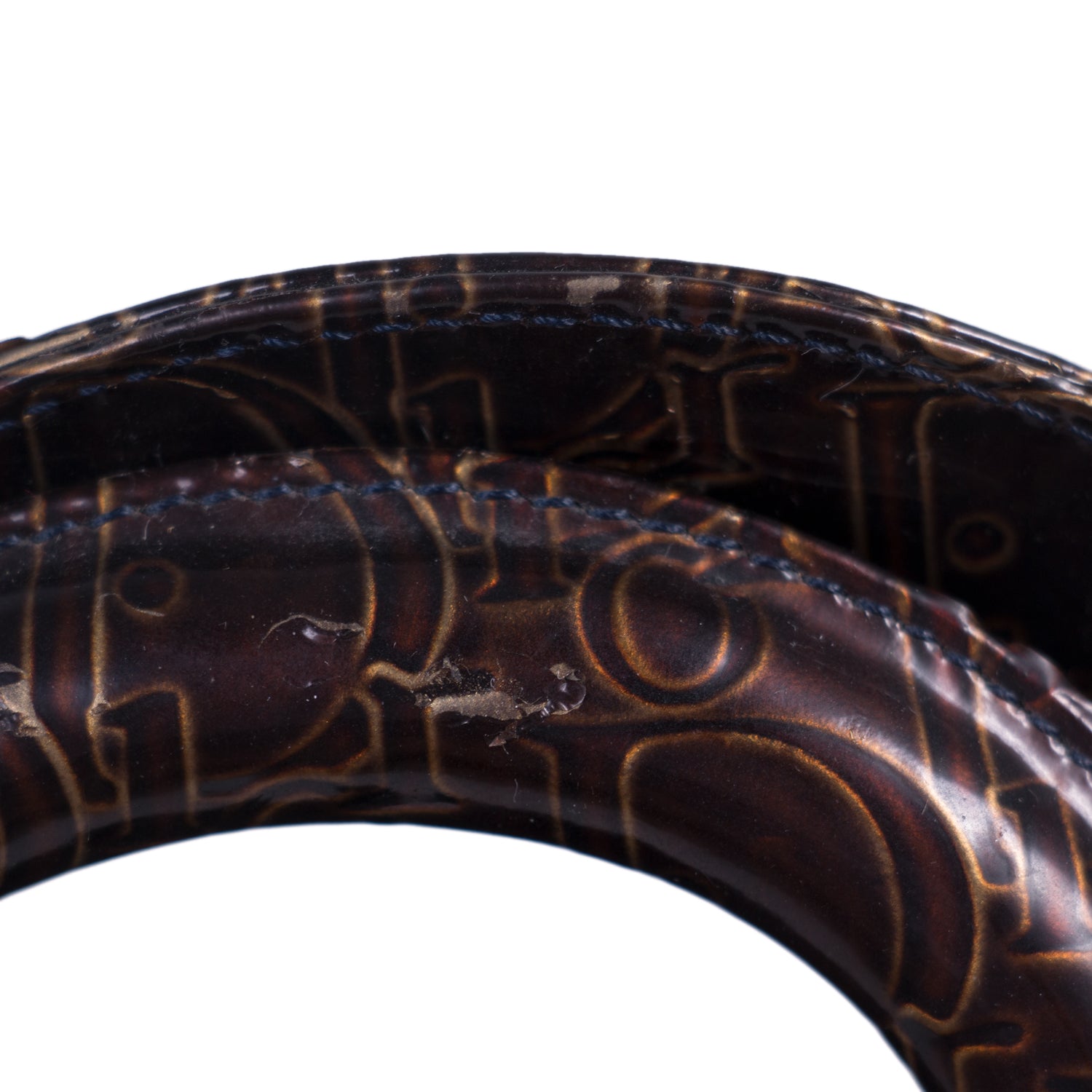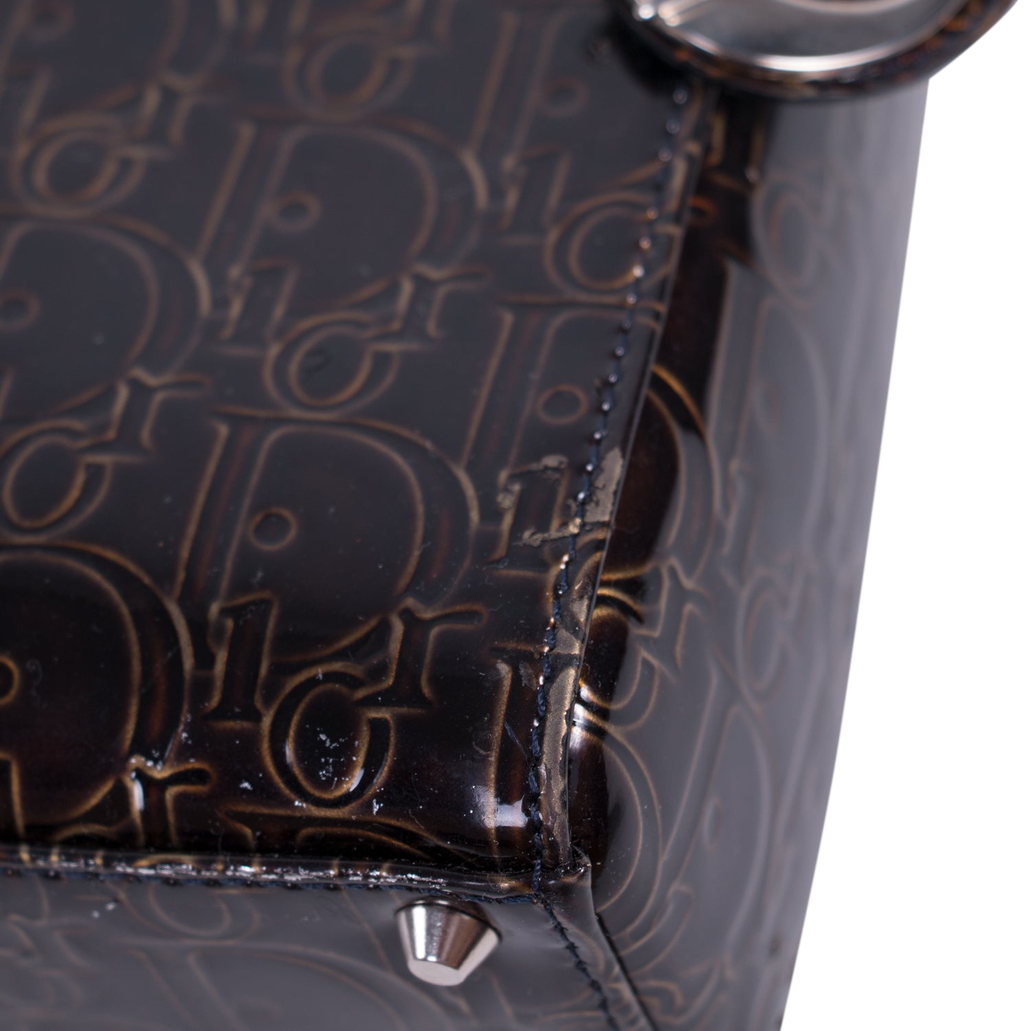 Condition: Pre/Loved in Fair Condition. Discoloration Throughout the Base, Corners, and Handles.