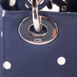 Details: Navy Blue Canvas With White Polka Dots Throughout / Silver-Tone Hardware / Dual Rolled Handles / Tonal Stitching / Jacquard Interior Lining / Single Zip Pocket At Interior / Interior Flap Closure / Logo Charm At Front