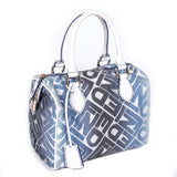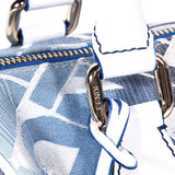 Details: White And Blue Ombré Canvas / Gold Tone Hardware / Patent White Leather Accent On Handle And Accessories / White Leather Trim / Dual Top Rolled Handles / Creme Woven Lining / Single Slit Pocket At Interior / Zip Closure At Top
