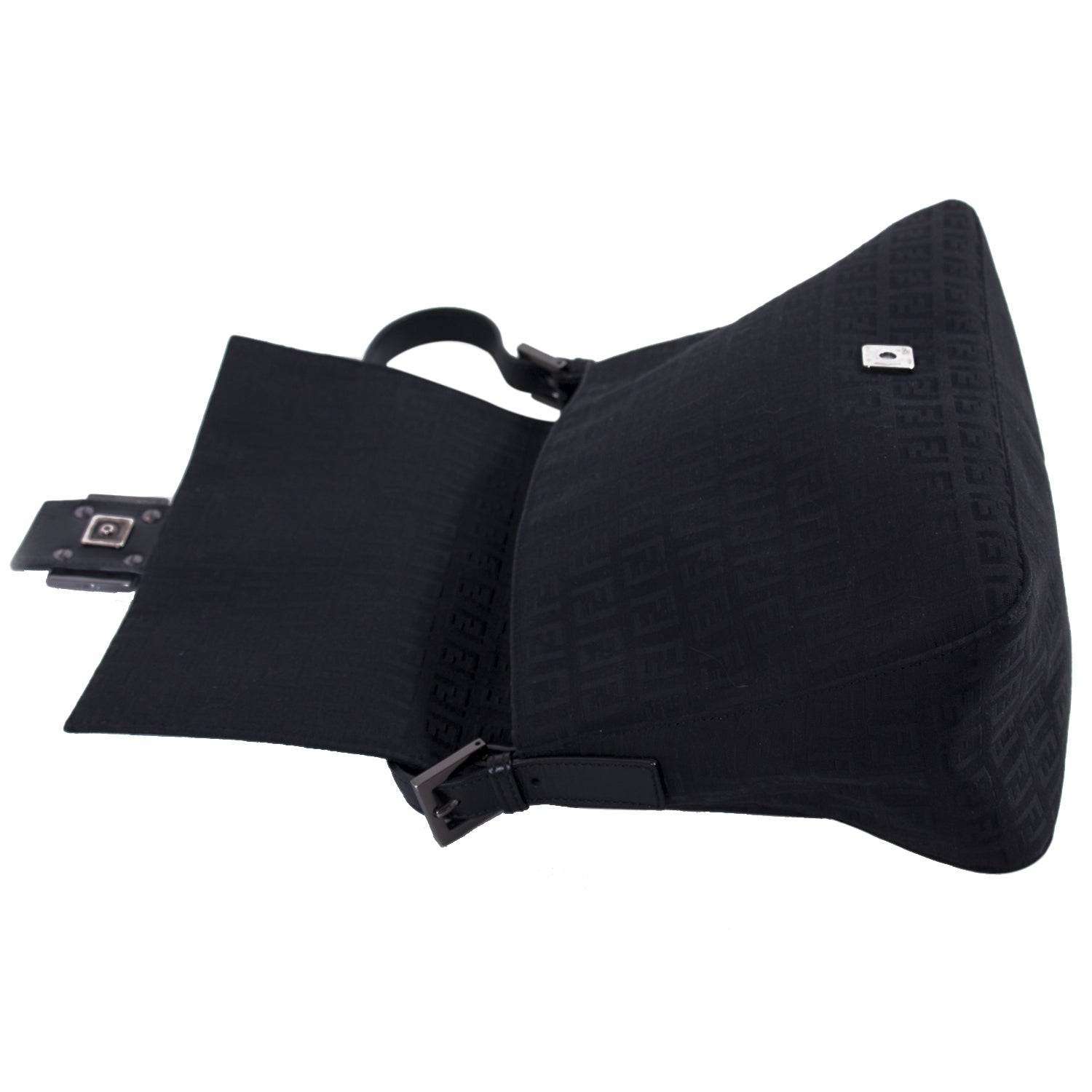 Details: Black Zucca Canvas / Silver-Tone Hardware / Black Leather Adjustable Shoulder Strap / Brown Fabric Interior Lining / Single Pocket at Interior Wall / Snap Closure at Front