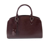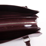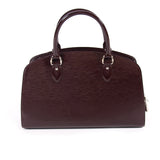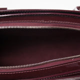 Details: Burgundy Epi Leather / Silver Tone Hardware / Dual Rolled Handles / Dual Exterior Pockets At Front And Back / Burgundy Alacantra Lining / Dual Pockets At Interior Walls / Two Way Zip Closures At Top
