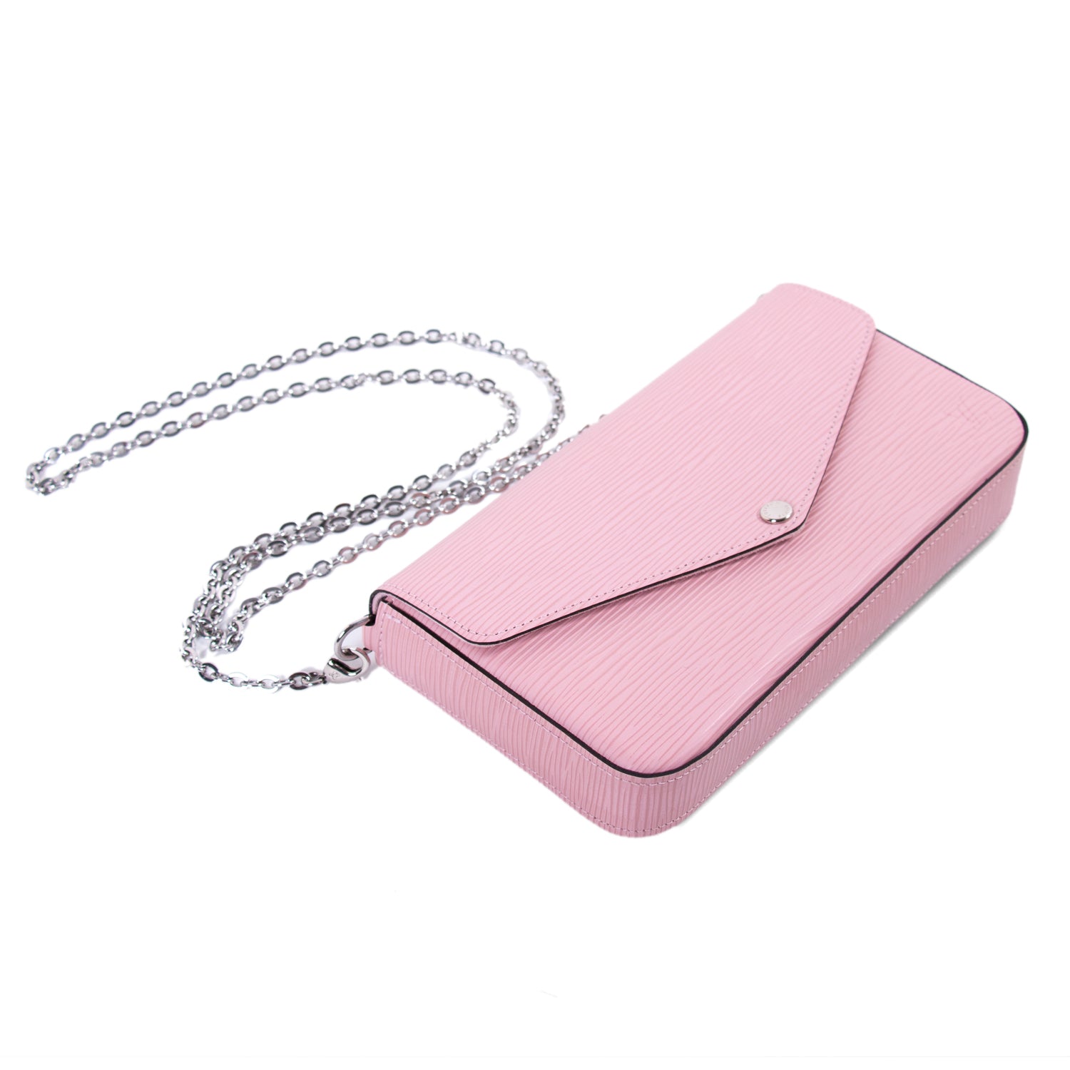 Details: Pink Epi Leather / Silver-Tone Hardware / Detachable Chain-Link / Logo at Front / Suede Interior Lining / Single Compartment / Flat Pocket at Inside / Push-Button Closure at Front Face / 2 Removable Zipper Pocket and Flat Pocket with 8 Card Slots