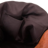 Details: Camel Brown Leather / Gold-Tone Hardware / Single Rolled Handle / Black Satin Lining / Single Compartment / Three Pockets, One With Zip Closure