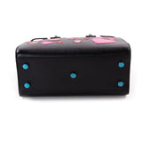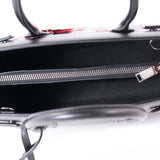 Details: Black Calf Leather / Silver-Tone Hardware / Dual Rolled Handles / Detachable Adjustable Shoulder Strap / Buckle-Fastening Sides For Adjustable Width / Protective Studs at Base / Black Fabric Interior Lining / Two Open Compartments and One Zipped Compartment / Single Internal Slot Pocket