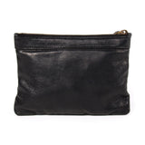Details: Black Leather / Brass Hardware / Exterior Zip Pocket At Front / Single Compartment / Black Fabric Interior Lining / Zip Closure At Top