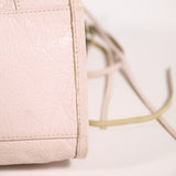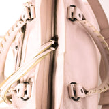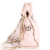 Details: Rose Pink Arena Leather / Antiqued Brass-Tone Hardware / Whipstitch Accent / Single Zip Pocket At Exterior / Stud And Buckle Adornments At Front / Dual Whipstitched Rolled Handles / Single Detachable Shoulder Strap / Black Woven Interior Lining / Dual Slit Pockets And Single Zip Pocket At Interior / Zip Closure At Top
