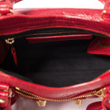 Details: Red Arena Leather / Gold-Tone Hardware / Buckle And Grommet Embellishments At Front Face / Detachable Shoulder Strap / Exterior Zip Pocket At Front Face / Dual Rolled Handles With Whipstitches Detail / Black Woven Lining At Interior / Single Zip Pocket At Interior / Zip Closure At Top