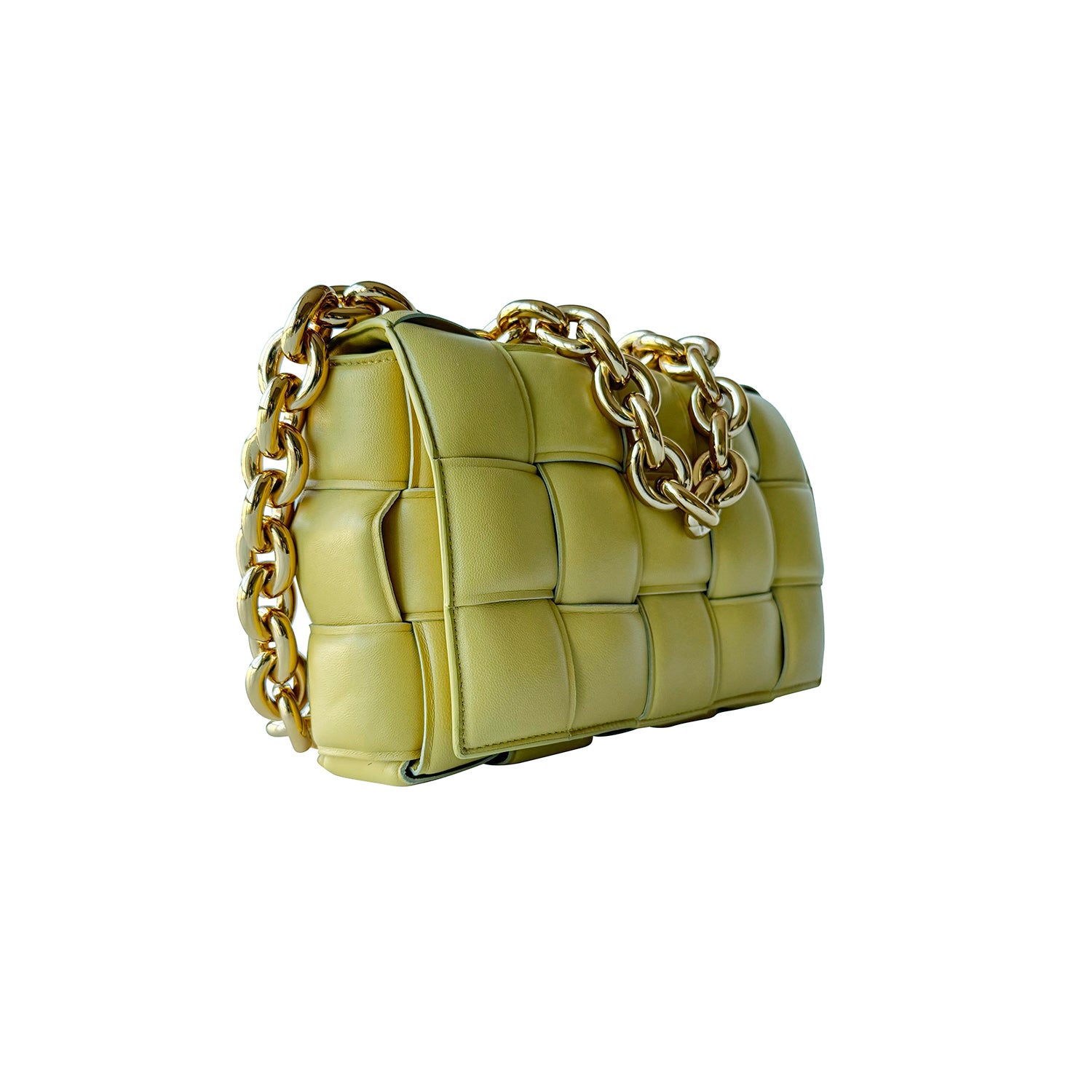 Description: Authentic Pre-Owned Bottega Veneta Casette Chain-Embelished Padded Intrecciato Leather Shoulder Bag
