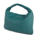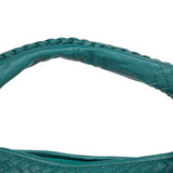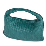 Details: Teal Intrecciato Nappa Leather / Gunmetal Hardware / Single Flat Handle / Brown Suede Interior Lining / Single Compartment / Dual Pocket At Interior, One With Zip Closure And Another Phone Pocket / Zip Closure At Top
