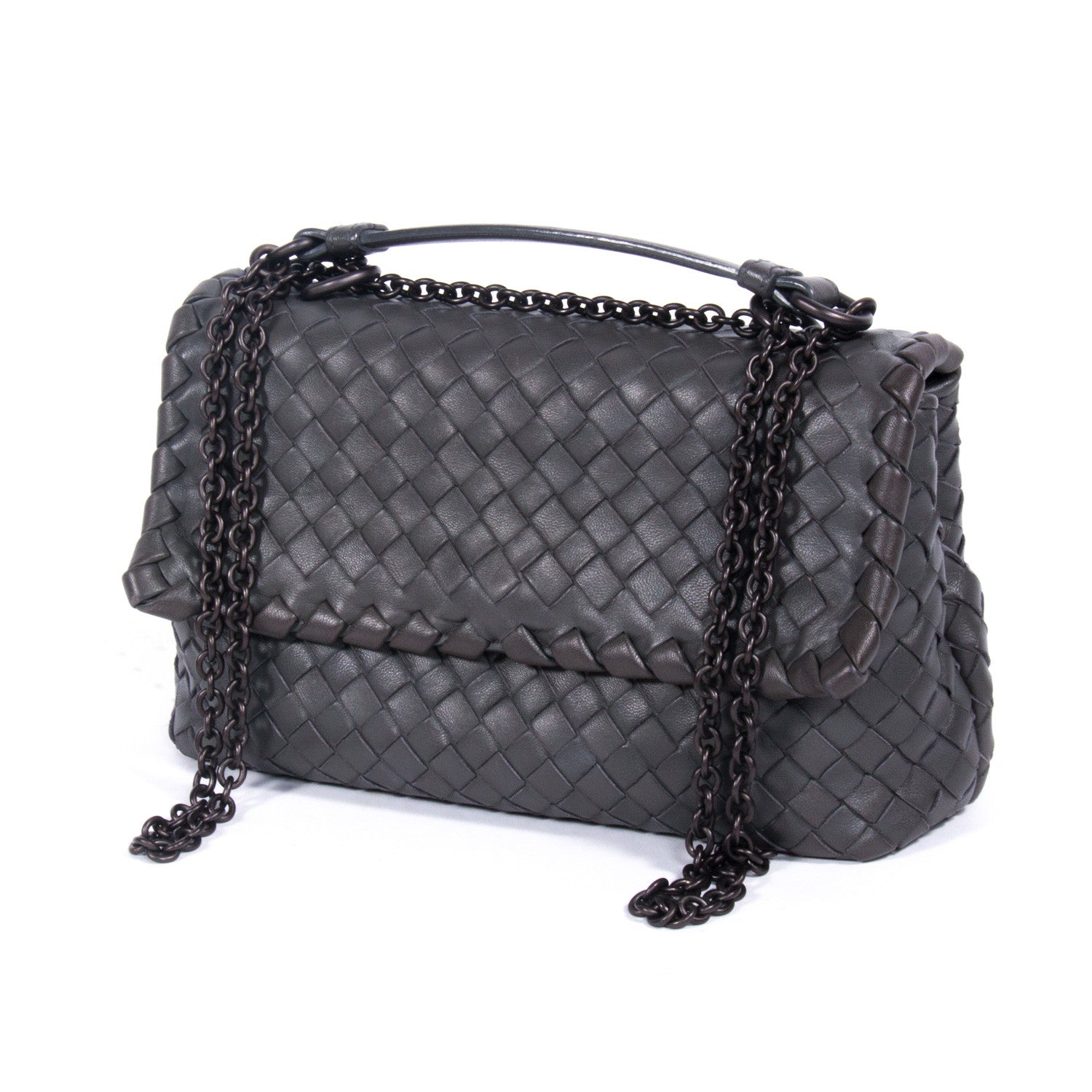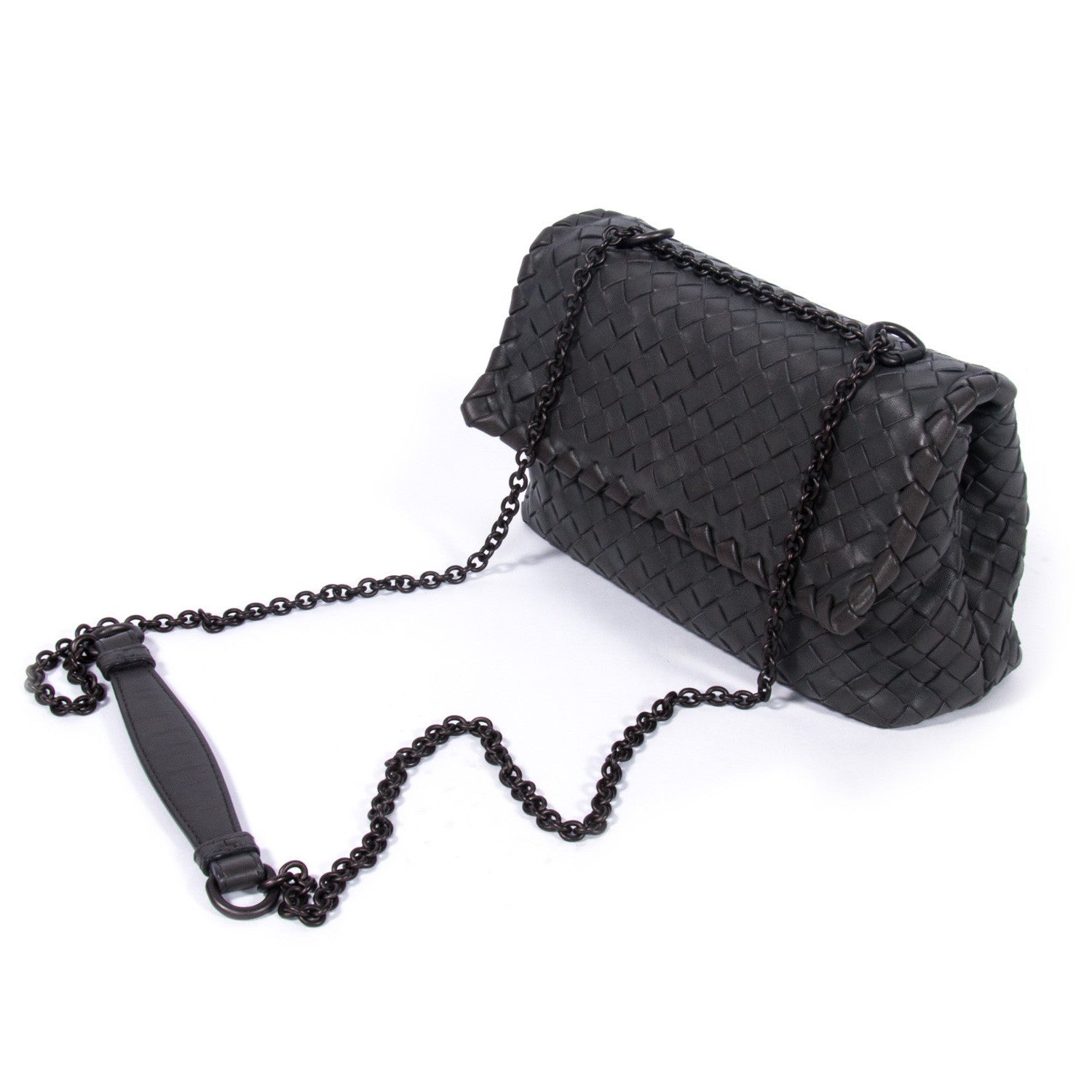 Details: Intrecciato Woven Lambskin Leather / Shoulder Bag / Crossbody / Leather Shoulder Strap With Chain Insets / Flap Top With Snap Closure / Interior Suede Lining / Two Large Inside Compartments And 1 Small Inside Compartment For Cards