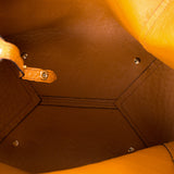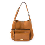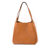 Details: Camel Embossed Check Grain Leather / Gold Tone Hardware / Dual Flat Shoulder / Protective Studs at Base / Leather Lining at Interior / Large Compartment / Magnetic Snap Closure / Detachable Zip Pouch