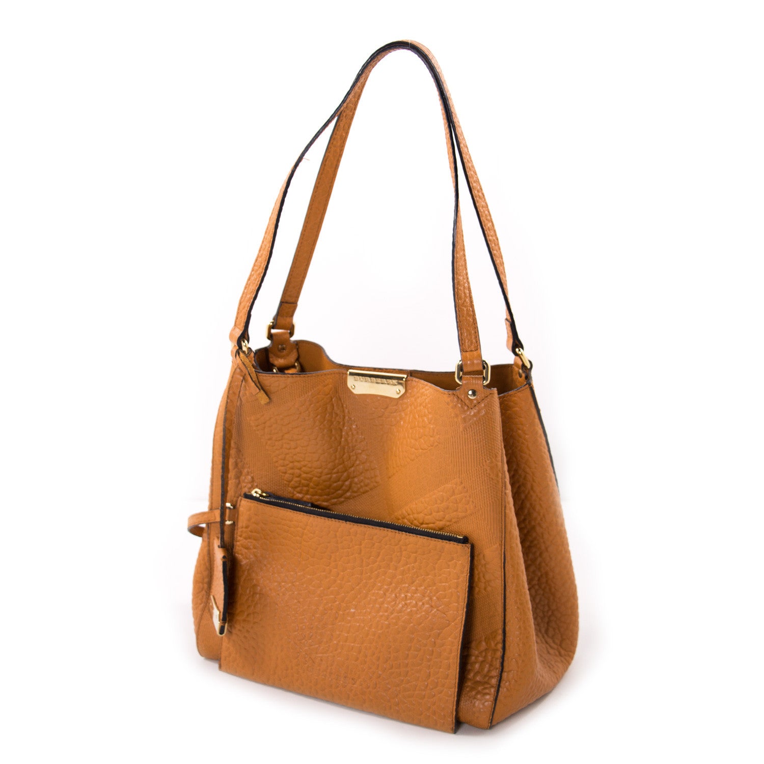 Description: Authentic Burberry Embossed Check Grain Leather Small Canterbury Tote Bag