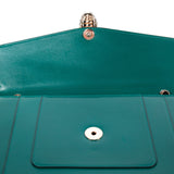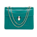 Details: Green Calf Leather / Light Gold-Tone Hardware / Dual Snake Chain Shoulder Strap / Gold-Plated Serpenti Head Embellishment With Malachite Eye Accents / Logo Adornment At Exterior Back / Aubergine Woven Lining / Three Compartments At Interior One With Zip Closure / Dual Interior Wall pockets One With Zip Closure / Push Closure At Front Flap