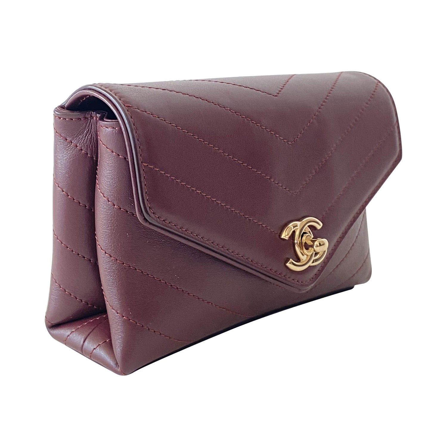 Description: Authentic Pre-Owned Chanel Chevron Leather Chain Waist Belt Bag