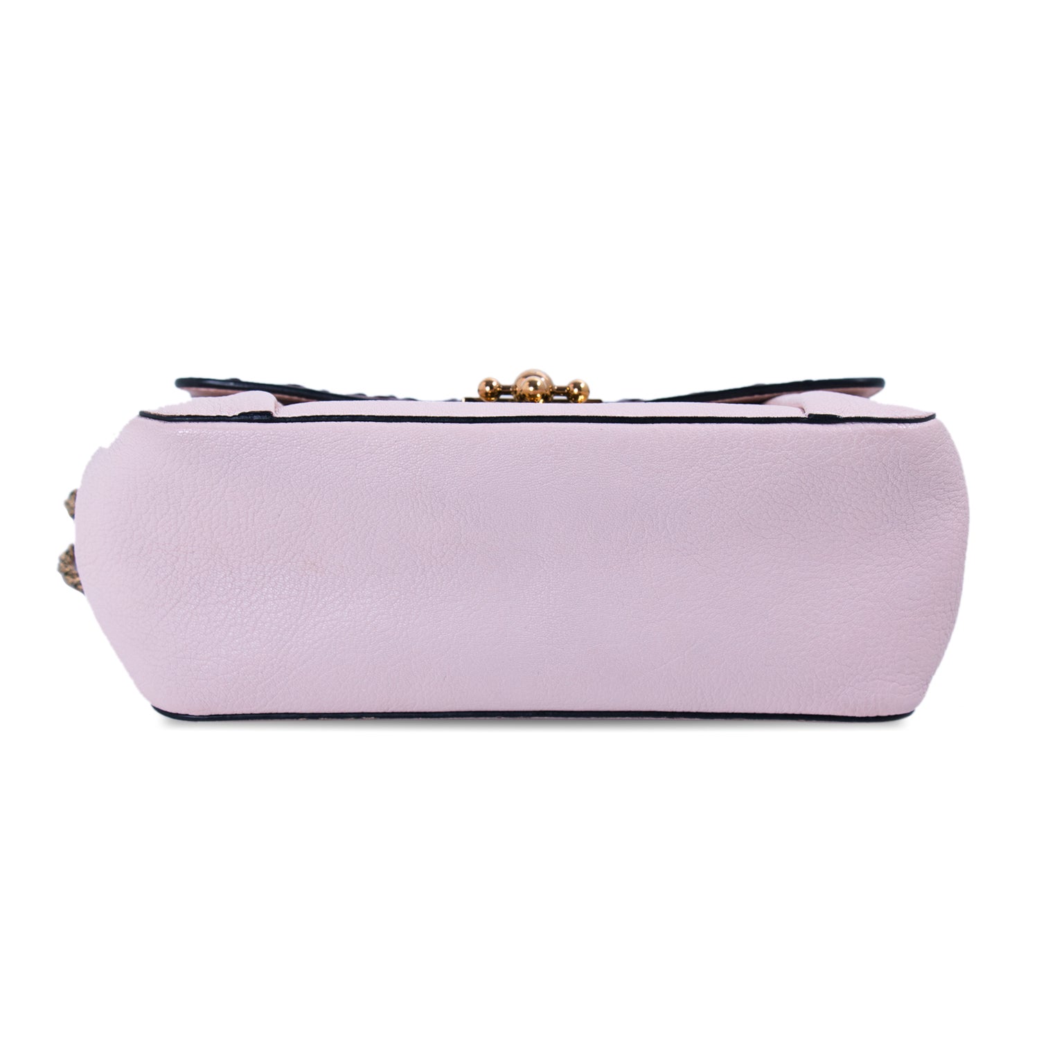Details: Pink Leather and Burgundy Ostrich Leather / Gold-Tone Hardware / Chain Shoulder Strap / Leather Lining / Single Compartment / Flat Pocket at Inside / Turn-Lock Closure at Front Flap