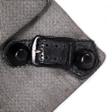 Details: Grey Canvas With Black Leather Trim / Silver-Tone Hardware / Front Zip Pocket That Opens to The Back / Studs and Buckles Embellishments / Black Leather and Woven Lining / Dual Compartments / Magnetic Snap Closure at Front Flap