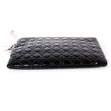 Description: Authentic Christian Dior Black Cannage Quilted Patent Leather Large Clutch Bag