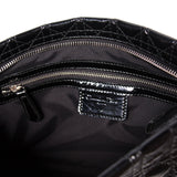 Details: Black Patent Leather / Cannage Pattern / Silver-Tone Hardware / Detachable Chain-Link Top Handle / Logo Adornment at Side / Black Fabric at Interior / Zip Pocket at Inside / Zip Closure at Top