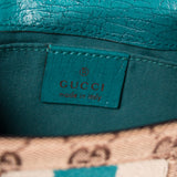 Details: Brown Monogram GG Canvas / Gold Tone Hardware / Turquoise Leather Accent And Trim / Detachable Chain-Link Shoulder Strap / Beige And Turquoise Gucci Web Panel / Horsebit Embellishment At Front Face / Turquoise Interior Lining / Single Slit Pocket At Interior / Fold-In Flap Closure At Front