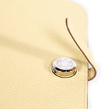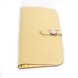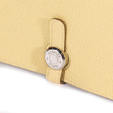 Details: Jaune Poussin Calfskin Togo Leather / Palladium Hardware / Interior Leather / Eight Card Slot / Dual Cash Compartments / Zipper Pocket At Back / Pull Through Closure At Front Face