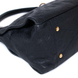 Details: Navy Blue Monogram Empreinte Embossed Leather / Gold-Tone Hardware / Single Rolled Top Handle with Braided Leather Accent / Protective Studs at Base / Grey and Black Canvas at Interior / 6 Slot Pockets and One Zip Pocket at Inside / Open Top