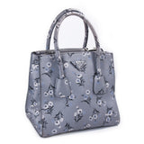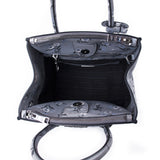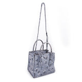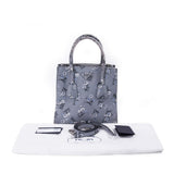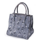 Details: Dark Grey Calf Leather / Flower Prints Throughout / Silver-Tone Hardware / Dual Rolled Handles / Detachable and Adjustable Shoulder Strap / Three Compartments, Two with Zipper Closure / Black Jacquard Print Lining / Zipper and Flat Pocket at Inside / Magnetic Snap Closure at Top