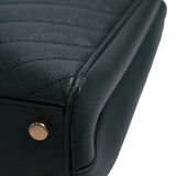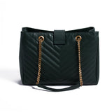 Details: Green Matelassé Leather / Gold-Tone Hardware / Dual Leather and Chain Shoulder Straps / Studs at Base / Black Fabric Interior Lining / Three Compartments, one with Zipper Closure / Magnetic Snap Closure at Front