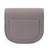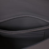 Details: Grey and Magneto Grained Leather / Silver Hardware / Adjustable Shoulder Strap / Exterior Pocket at Back / Zipper Pocket at 4 Card Slots at Interior / Fold-in Flap Closure at Front