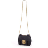 Details: Black Leather / Gold-Tone Hardware / Logo At Front Flap / Tonal Stitching / Single Braided Chain-Link Shoulder Strap / Tan Leather Interior Lining / Single Flat Pocket At Wall / Turn Lock Closure At Front Flap