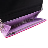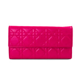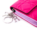 Details: Fuchsia Calf Leather / Cannage Details / Silver-Tone Hardware / Detachable Long Chain / Black and Purple Leather Interior / Two-Bill Compartment / Zipper Pocket / Twelve-Card Slots