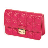Details: Pink Lambskin Leather in Cannage Pattern / Gold Tone Hardware / Detachable Chain-Link Shoulder Strap with Leather Pad / Pocket at Exterior / Black and Pink Leather Interior Lining / Dual Compartments One with Zip Closure / Seven Cards Slot at Interior Wall / Flat Pocket at Interior / Flap Closure with Clasp Lock