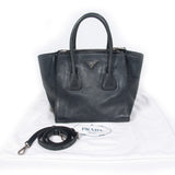 Description: Authentic Prada Glace Calf Twin Tote in Denim Color