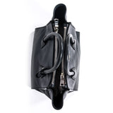 Details: Blue Denim Leather / Silver-Tone Hardware / Dual Rolled Top Handles / Detachable Shoulder Strap / Dual Exterior Zip Pockets / One Large Compartment / Black Woven Interior Lining / Dual Pockets At Interior Wall: One Slit Pocket And Another Zip Closure Pocket / Magnetic Snap Closure At Top