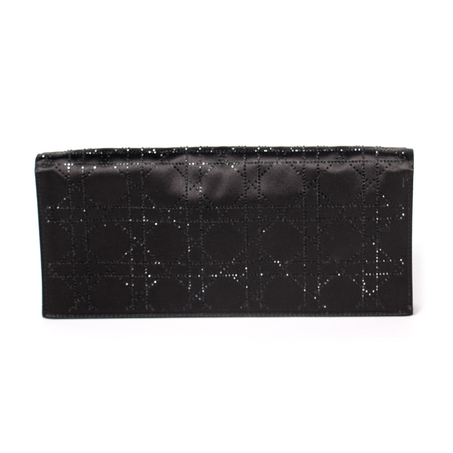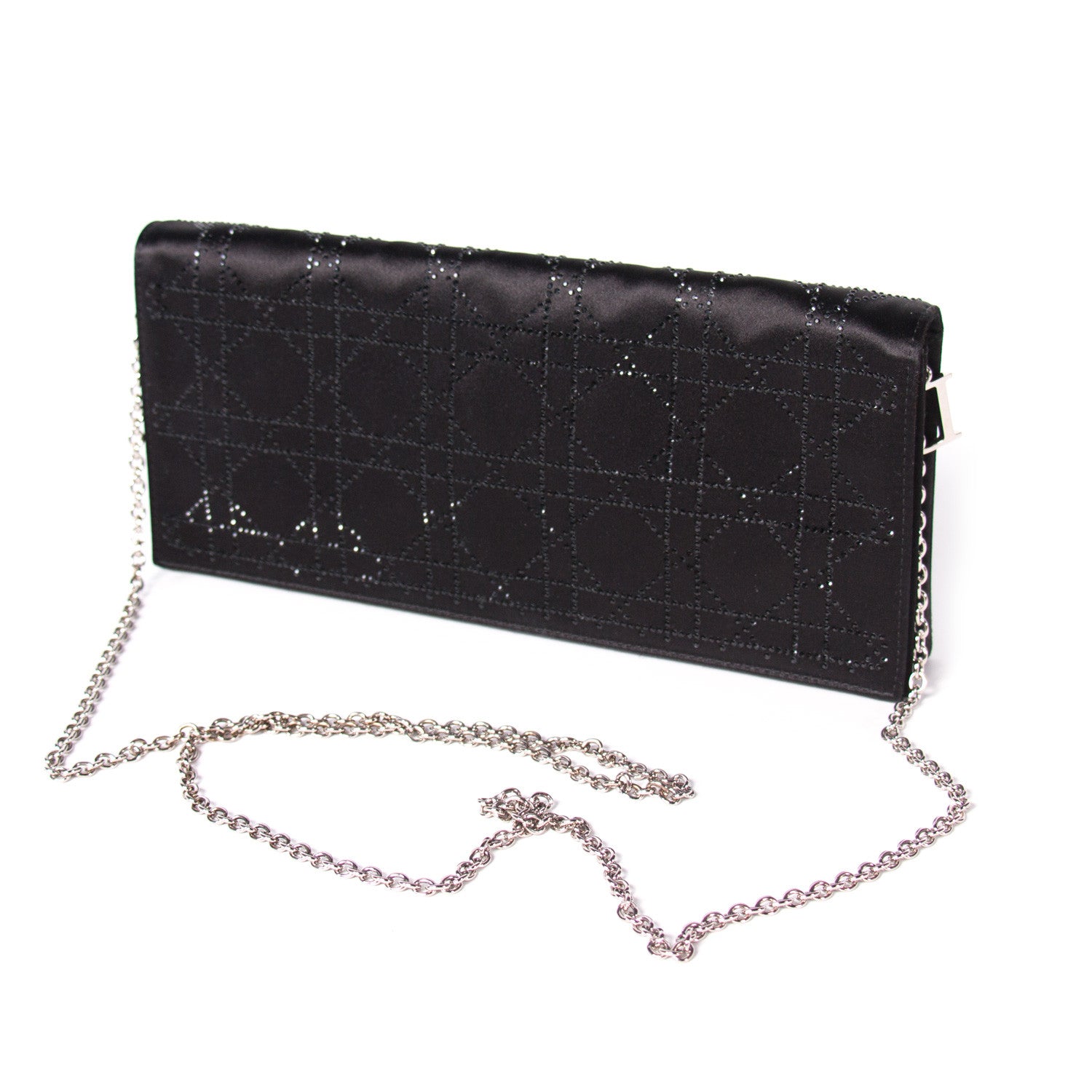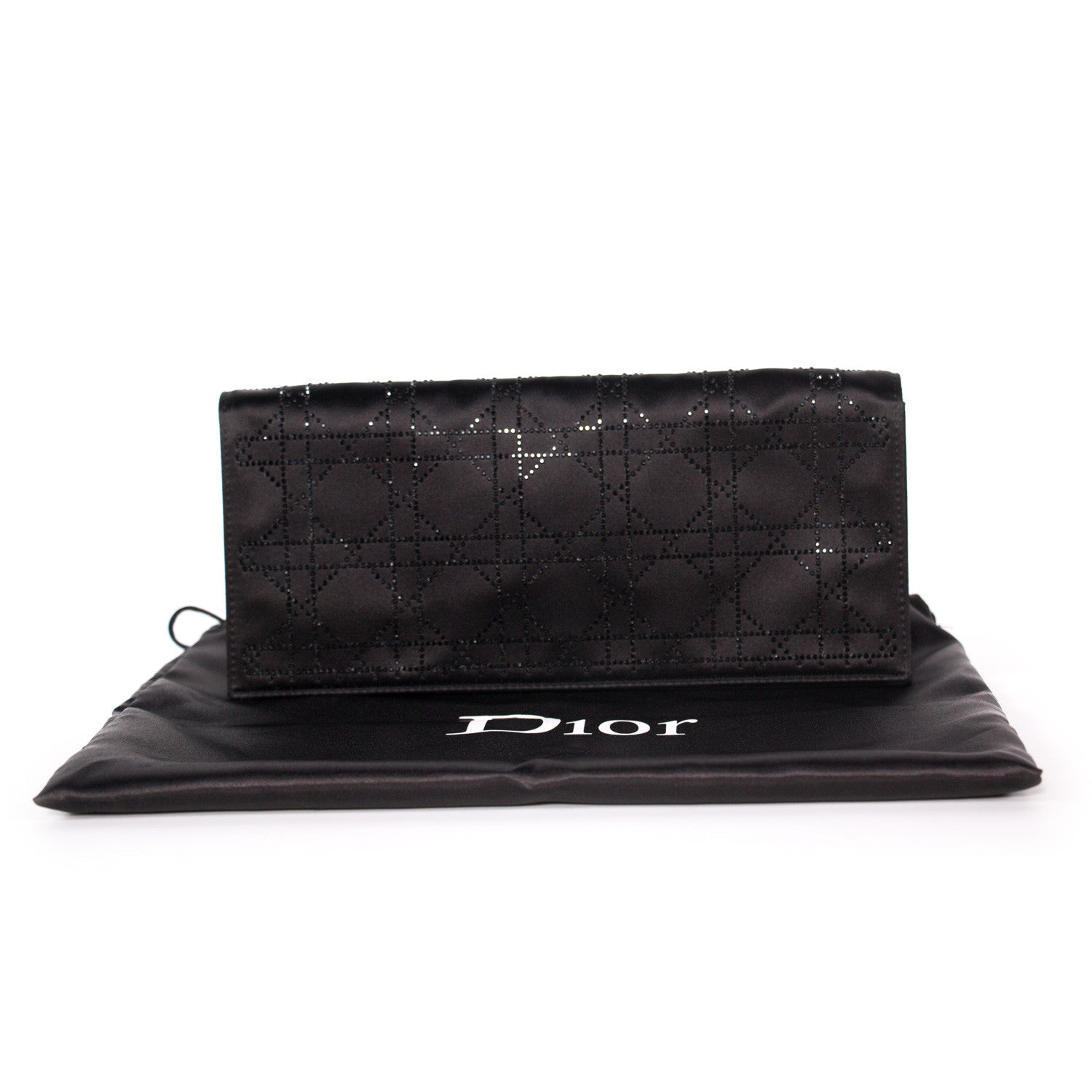 Description: Authentic Christian Dior Lady Dior Black Cannage Satin Clutch