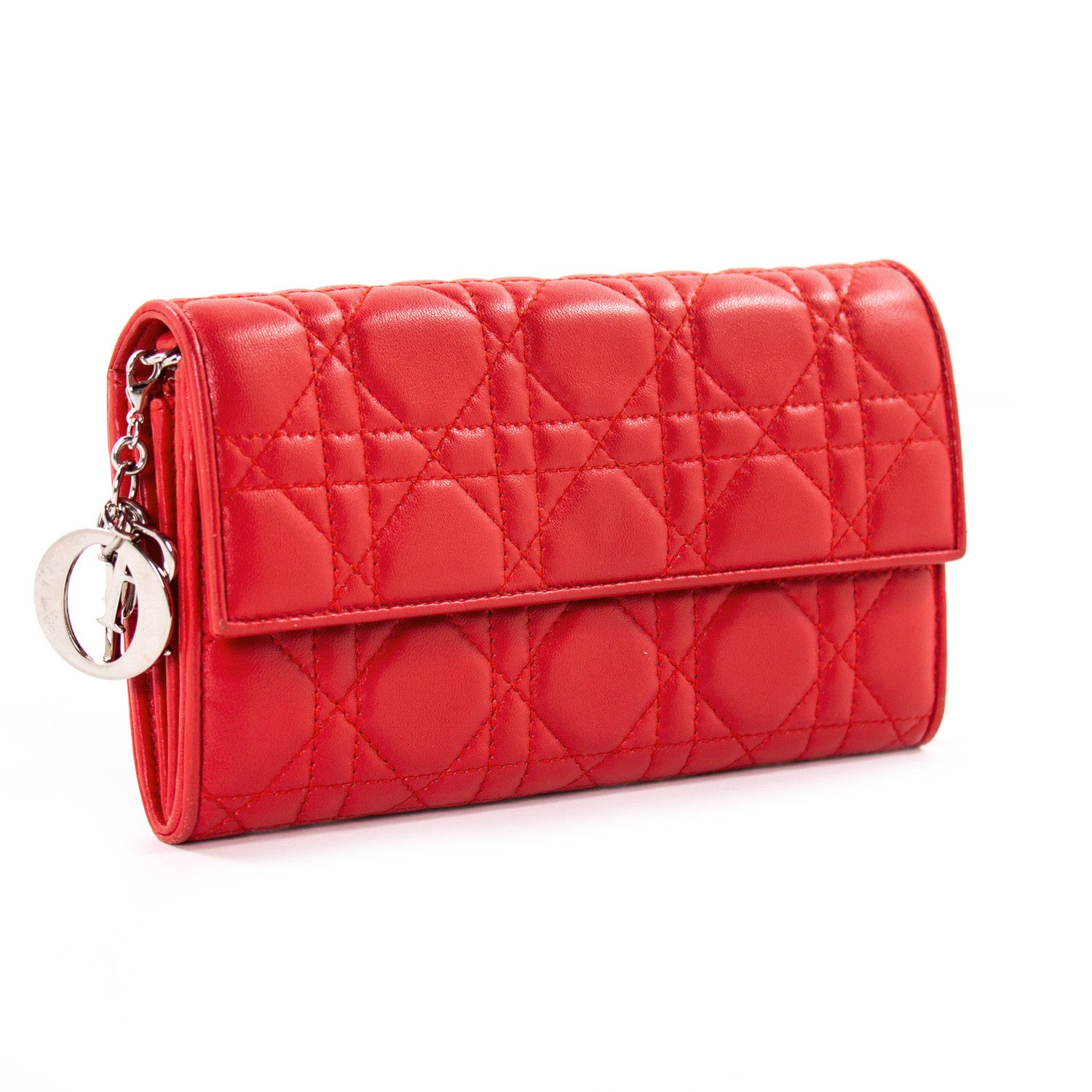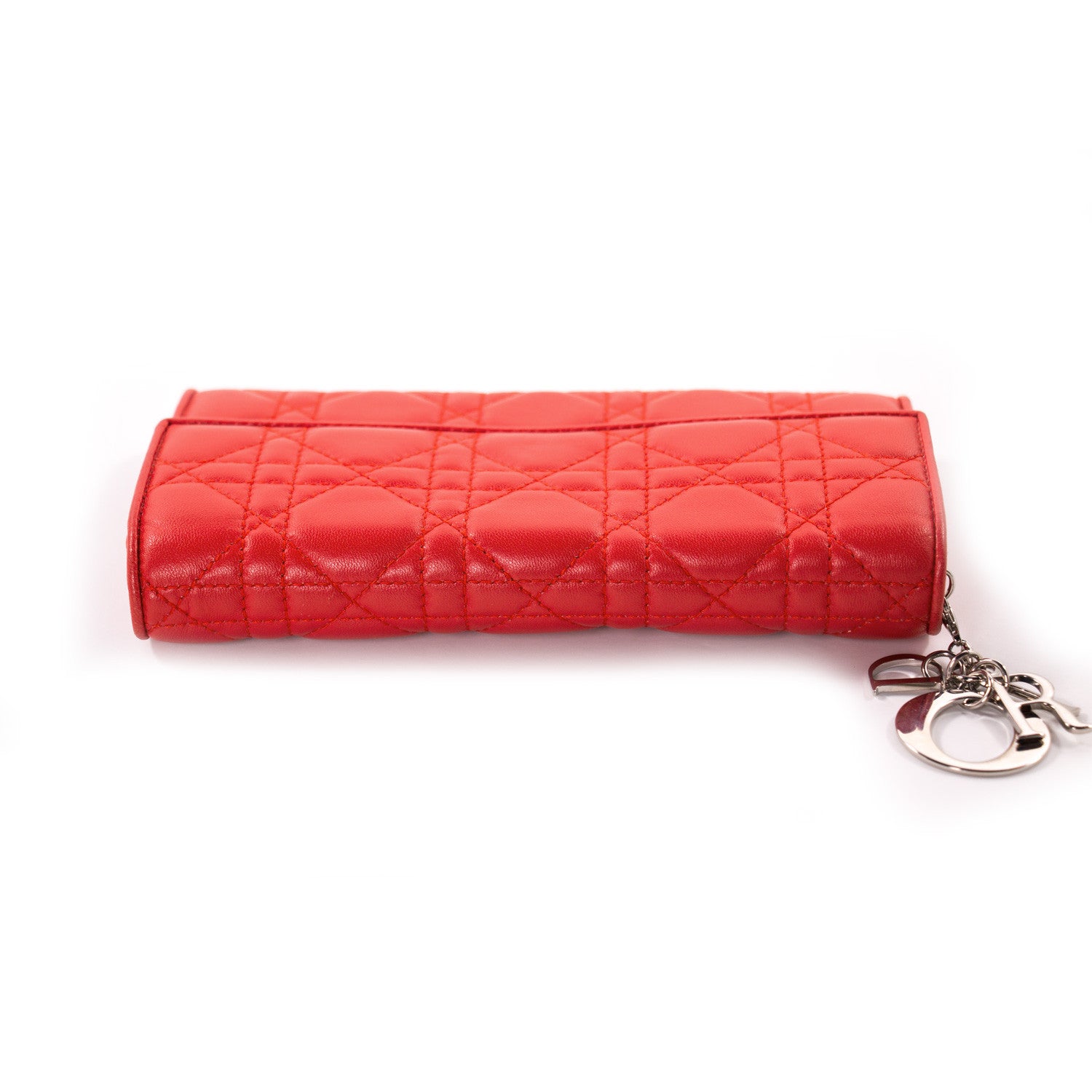 Details: Red Cannage Quilted Leather / Silver-Tone Hardware / Detachable Shoulder Strap / Removable Dior Logo Charm / Red Leather Lining / 12 Card Slots On The Interior / 4 Card Slots At The Exterior / Dual Compartments / Zip and Flat Pocket