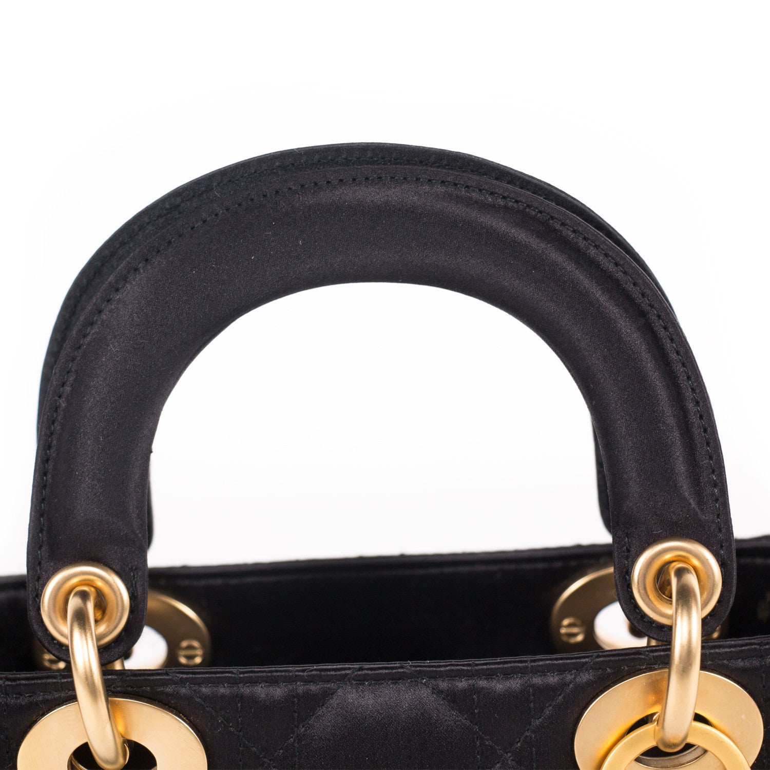 Description: Authentic Christian Dior Black Satin Micro Lady Dior