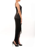 Details: Black Color / Exposed Stitch Detail Throughout / Concealed Zip Closure At Side