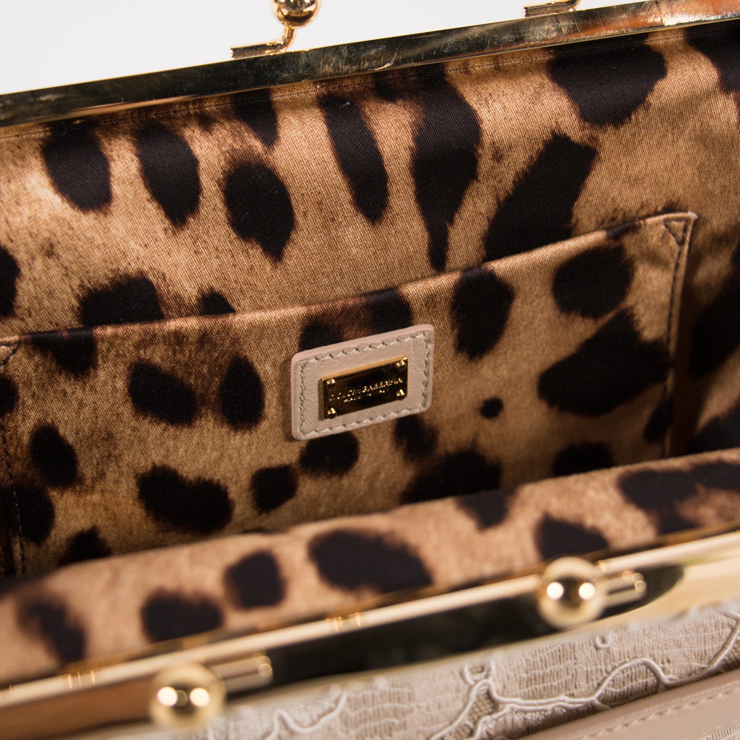 Description: Authentic Dolce & Gabbana Tan Floral Fabric Bag