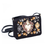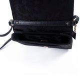 Details: Black Satin / Gold-Tone Hardware / Adjustable Shoulder Strap / One Compartment / 3 Flat Pockets at Inside / Magnetic Snap Closure / Embroidery Throughout the Front
