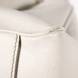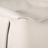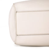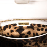 Details: White Leather / Gold Tone Hardware / Single Rolled Handles / Detachable Adjustable Shoulder Strap / Engraved Logo Metal Card At Front / Leopard Brown Printed Woven Lining / Single Compartment / Three Pockets At Interior, One With Zip Pocket / Magnetic Snap Closure At Front Flap