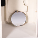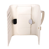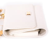 Details: White Grained Leather / Gold-Tone Hardware / Detachable Chain Link Shoulder Strap / Logo Plate at Front / Six Cards Slots / Three Bills Compartments / Phone and Mirror Pocket / Push Button Closure