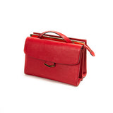 Details: Red Calf Textured Leather / Top Handle / Detachable Adjustable Shoulder Strap / Gold-Tone Hardware / Dual Compartment One with Zip Closure / Flat Pocket at Inside / Magnetic Snap Closure at Front Flap
