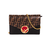 Details: Black and Brown Calf Leather / Gold-Tone Hardware / Detachable Chain-Link Shoulder Strap / F Logo at Front / FF Embossed Logo Throughout / Interior Leather Lining / Zipper and Bill Compartment at Inside / Ten-Card Slots / Magnetic Snap Closure at Flap