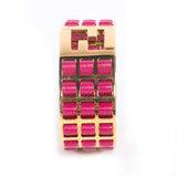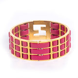 Details: Fuschia Leather / Gold Tone Hardware / Hinge Closure / Carved FF Logo / Spring Ring Clasp On The Back