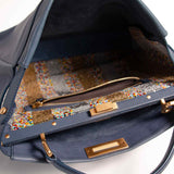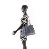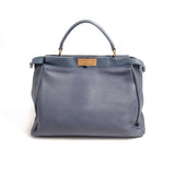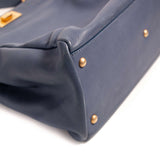 Details: Blue Soft Leather / Gold-Tone Hardware / Single Rolled Handle / Detachable Shoulder Strap / Protective Feet at Base / Blue Suede Lining / Multicolor Beaded Embellishment on the Inside / Dual Compartments / Zipper Pocket at Inside / Dual Turn-Lock Closure at Front and Back