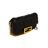 Details: Black Nappa Leather / Gold-Tone Hardware / Embossed FF Logo Throughout / Detachable Leather Handle and Shoulder Strap / Fabric Interior Lining / 3 Card Slots / Magnetic Snap Closure at Front Flap
