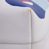 Details: White and Multicolor Leather / Black Leather Dual Shoulder Straps / Logo Print at Exterior / Cobalt Blue Fabric Lining / Two Slit Pockets at Interior / Zipper Closure at Top